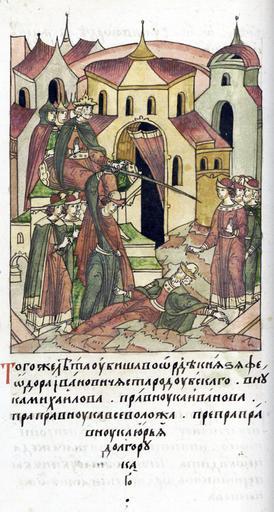Keywords: Facial Chronicle - b.07, p.364 - Murder of Fedor Ivanovich of Starodub.jpg ЛИЦЕВОЙ ЛЕТОПИС ЫЙ СВОД В том году убили в О де князя Феодо а Ивановича Ста одубского внука ихайлова п авнука Иванова п ап авнука Всеволодова п еп ап авнука Ю ия Долго укого http //www akteon-elib ru/LITsIeVOI-LIeTOPISNYI-SVOD-Russkaya-letopisnaya-istoriya-Kniga-7/ 2 century 16 anonymous PD-Old Facial Chronicle v 6 - Ostermanovskiy 1-y tom 1254-1378 Death in medieval miniatures Russia Files uploaded by Shakko from various sources 1330 in Russia Princes of Starodub |