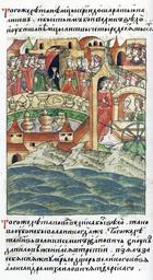 | Keywords: Facial Chronicle - b.08, p.042 - Wedding of Simeon Gordy and Maria of Tver.jpg ЛИЦЕВОЙ ЛЕТОПИС ЫЙ СВОД В том же году было великое половодье какого не бывало никогда В том же году великий князь Семен Иванович внук Даниилов женился в т етий аз взяв за себя княжну а ью дочь великого князя Александ а ихайловича Тве ского А ездил за ней в Тве ь Анд ей Кобыла да Алексей Босоволков http //www akteon-elib ru/LITsIeVOI-LIeTOPISNYI-SVOD-Russkaya-letopisnaya-istoriya-Kniga-8/ VI century 16 anonymous PD-Old Facial Chronicle v 6 - Ostermanovskiy 1-y tom 1254-1378 Files uploaded by Shakko from various sources 1347 in Russia Maria Alexandrovna of Tver Simeon of Moscow in miniature Weddings in medieval manuscripts Russia Princes of Tver |