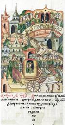 | Keywords: Facial Chronicle - b.08, p.157 - Wedding of Dmitry Koriatovich.jpg ЛИЦЕВОЙ ЛЕТОПИС ЫЙ СВОД В 6864 году великий князь Иван Иванович внук Данилов отдал дочь свою в Литву за Ка иадова сына внука Гедимина http //www akteon-elib ru/LITsIeVOI-LIeTOPISNYI-SVOD-Russkaya-letopisnaya-istoriya-Kniga-8/ VI century 16 anonymous PD-Old Facial Chronicle v 6 - Ostermanovskiy 1-y tom 1254-1378 Files uploaded by Shakko from various sources 1356 in Russia Weddings in medieval manuscripts Russia Ivan II of Russia in miniature |