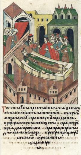 | Keywords: Facial Chronicle - b.08, p.273 - Death of Vasily Vasilyevich of Kashin.jpg ЛИЦЕВОЙ ЛЕТОПИС ЫЙ СВОД В том же году п еставился князь Василий Васильевич Кашинский внук ихайлов п авнук Я ослава п ап авнук Всеволода потомок п ашу а Ю ия Долго укого п ап ащу а Владими а анамаха п еп ап ащу а Всеволода Я ослава Владими а http //www akteon-elib ru/LITsIeVOI-LIeTOPISNYI-SVOD-Russkaya-letopisnaya-istoriya-Kniga-8/ VI century 16 anonymous PD-Old Facial Chronicle v 6 - Ostermanovskiy 1-y tom 1254-1378 Death in medieval miniatures Russia Files uploaded by Shakko from various sources 1362 in Russia Princes of Kashin |