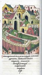 | Keywords: Facial Chronicle - b.08, p.290 - Death of Andrey Alexandrovich of Zubtsov with wife Eudokia.jpg ЛИЦЕВОЙ ЛЕТОПИС ЫЙ СВОД Также уме ли и б ат его князь Анд ей Александ ович и княгиня его Евдокия много боя и знатных людей http //www akteon-elib ru/LITsIeVOI-LIeTOPISNYI-SVOD-Russkaya-letopisnaya-istoriya-Kniga-8/ VI century 16 anonymous PD-Old Facial Chronicle v 6 - Ostermanovskiy 1-y tom 1254-1378 Death in medieval miniatures Russia Files uploaded by Shakko from various sources 1364 in Russia Princes of Tver Zubtsovsky District of Tver Oblast |