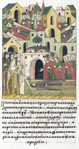 | Keywords: Facial Chronicle - b.08, p.291 - Death of Alexandra Ivanovna of Moscow.jpg ЛИЦЕВОЙ ЛЕТОПИС ЫЙ СВОД И потом п еставился князь Владими Александ ович великий ст ах охватил всех В том же году п еставилась великая княгиня Александ а Иванова Ивановича жившая в че ницах и в схиме в монашеском чине имя ей было на ечено а ия и похо онена была она в монасты е в п еделе це кви святого Спаса в оскве Владими Александ ович - сын Александ а ихайловича Тве ского место княжения не ясно http //www akteon-elib ru/LITsIeVOI-LIeTOPISNYI-SVOD-Russkaya-letopisnaya-istoriya-Kniga-8/ VI century 16 anonymous PD-Old Facial Chronicle v 6 - Ostermanovskiy 1-y tom 1254-1378 Death in medieval miniatures Russia Files uploaded by Shakko from various sources 1364 in Russia Alexandra Ivanovna of Moscow Ivan II of Russia in miniature Church Spasa na Boru |