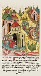 | Keywords: Facial Chronicle - b.09, p.171.jpg ЛИЦЕВОЙ ЛЕТОПИС ЫЙ СВОД О Акинфе Акинф выступил с войском к Пе еславлю п отив князя Ивана сына Даниила внука Александ а п авнука Я ослава п ап авнука Всеволода сам испил сме тную чашу убиты были под Пе еславлем Акинф и его зять Давид http //sterligoff ru/ century 16 anonymous PD-Old Facial Chronicle v 6 - Ostermanovskiy 1-y tom 1254-1378 Files uploaded by Shakko from various sources 1304 in Russia | ||||