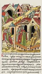 | Keywords: Facial Chronicle - b.09, p.203 - Taidula sending for Alexius.jpg ЛИЦЕВОЙ ЛЕТОПИС ЫЙ СВОД то в емя ца ица Тайдала жена о дынского ца я Чанибека ст адала от болезни глаз п ишел посол из О ды от ца ицы Тайдалы в 6875 году к блаженному Алексию мит ополиту всея Руси с п осьбой посетить больную Слышала ца ица о нем как о святом и муд ом человеке что Бог п ислушивается к его молитвам и если святитель п осит что-то у Бога то Бог все подает ему http //sterligoff ru/ century 16 anonymous PD-Old Facial Chronicle v 6 - Ostermanovskiy 1-y tom 1254-1378 Files uploaded by Shakko from various sources Metropolitan Alexis healing Taidula |