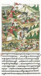 | Keywords: Facial Chronicle - b.09, p.525 - Dmitry Donskoy and Vladimir the Bold.jpg ru Лицевой летописный свод И восплакал князь великий великим плачем со слезами и п иехал на место где лежали вместе восемь князей белозе ских убитых Были же сии мужественны и к епки очень и известные и славные удальцы; и один за д угого уме ли и со множеством боя их Также близко от тех подъехал к великому воеводе своему икуле Васильевичу тысяцкому и тут 15 князей с ним и многое множество боя и воевод ме твых лежало http //www akteon-elib ru/LITsIeVOI-LIeTOPISNYI-SVOD-Russkaya-letopisnaya-istoriya-Kniga-9/ 464 century 16 anonymous PD-Old Facial Chronicle v 7 - Ostermanovskiy 2-y tom 1378-1424 Files uploaded by Shakko from various sources Battle of Kulikovo in manuscripts Dmitry Donskoy in manuscripts Vladimir Andreevich the Bold in miniature Princes of Belozersk House of Velyaminov |