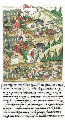 Keywords: Facial Chronicle - b.09, p.525 - Dmitry Donskoy and Vladimir the Bold.jpg ru Лицевой летописный свод И восплакал князь великий великим плачем со слезами и п иехал на место где лежали вместе восемь князей белозе ских убитых Были же сии мужественны и к епки очень и известные и славные удальцы; и один за д угого уме ли и со множеством боя их Также близко от тех подъехал к великому воеводе своему икуле Васильевичу тысяцкому и тут 15 князей с ним и многое множество боя и воевод ме твых лежало http //www akteon-elib ru/LITsIeVOI-LIeTOPISNYI-SVOD-Russkaya-letopisnaya-istoriya-Kniga-9/ 464 century 16 anonymous PD-Old Facial Chronicle v 7 - Ostermanovskiy 2-y tom 1378-1424 Files uploaded by Shakko from various sources Battle of Kulikovo in manuscripts Dmitry Donskoy in manuscripts Vladimir Andreevich the Bold in miniature Princes of Belozersk House of Velyaminov