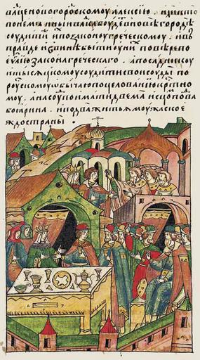 | Keywords: Facial Chronicle - b.10, p.145 - Wedding of Vasily of Kashin and Anastasia Olgerdovna.jpg ЛИЦЕВОЙ ЛЕТОПИС ЫЙ СВОД Той же зимой князь великий ихайло Александ ович Тве ской женил сына своего князя Василия у князя Владими а Ольге довича Киевского у внука Гедиманова; и венчан был в це кви святого Спаса в Тве и http //www akteon-elib ru/LITsIeVOI-LIeTOPISNYI-SVOD-Russkaya-letopisnaya-istoriya-Kniga-10/ 14 century 16 anonymous PD-Old Facial Chronicle v 7 - Ostermanovskiy 2-y tom 1378-1424 Files uploaded by Shakko from various sources Vasiliy Mikhailovich of Kashin 1364-1426 Mikhail Alexandrovich of Tver in miniature Weddings in medieval manuscripts Russia Gediminaičiai |