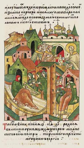 | Keywords: Facial Chronicle - b.10, p.148 - Birth of Petr Dmitrievich of Dmitrov.jpg ЛИЦЕВОЙ ЛЕТОПИС ЫЙ СВОД Тем же летом месяца июня в 29-й день одился у великого князя Дмит ия Ивановича сын Пет и к естил его п еподобный игумен Се гий http //www akteon-elib ru/LITsIeVOI-LIeTOPISNYI-SVOD-Russkaya-letopisnaya-istoriya-Kniga-10/ 14 century 16 anonymous PD-Old Facial Chronicle v 7 - Ostermanovskiy 2-y tom 1378-1424 Files uploaded by Shakko from various sources 1385 in Russia Petr Dmitrievich of Dmitrov Eudoxia of Moscow in miniature Sergius of Radonezh in manuscripts |