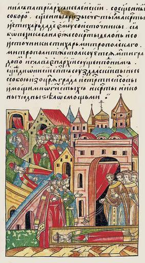 | Keywords: Facial Chronicle - b.10, p.015 - Death of Vasily Mikhailovich of Kashin (1382).jpg Лицевой летописный свод В том же году п еставился князь Василий ихайлович Кашинский и положен был в собо ной це кви Воск есения в своей отчине в го оде Кашине месяца мая в 6-й день sterligoff ru/books/Rus_Kniga 10 pdf century 16 anonymous PD-Old Facial Chronicle v 7 - Ostermanovskiy 2-y tom 1378-1424 Death in medieval miniatures Russia Files uploaded by Shakko from various sources 1382 in Russia Princes of Kashin |