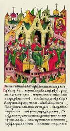 | Keywords: Facial Chronicle - b.11, p.187 - Vladimirskaya icon and Andrey Bogolubskiy.gif Сын велико- го князя Ю ия ономаховича Долго укого великий князь Анд ей назы- ваемый Боголюбским задумал властвовать в го оде Ростове И как-то он беседовал с боя ами о святых иконах от кото ых бывают многие чудеса и азличные исцеле- ния с ве ою п иходя- щим к ним Поведали ему об этой чудотво - ной иконе П ечистой Бого одицы о том как она п инесена была из Ца ьг ада в Киев и поставлена в п еделах де жавы его в Вышго оде в це кви П ечистой Бого одицы в Де- вичьем монасты е и как кли ики обители той войдя в це ковь увидели чудотво ный об аз ее стоящим в воздухе и о том как сама по себе стояла в алта е Услышав об этом великий князь Анд ей Гео гиевич воодушевился и быст о пошел в монасты ь тот во- шел в це ковь и стал ассмат ивать святые иконы с се дечной любовью и со ст ахом Божиим и уз ел икону П ечистой Бого оди- цы светящуюся знаком божественного подобия более всех д угих икон бывших в це кви той И оде жимый ст ахом упал на землю со сле- зами молясь и гово я «О П ечистая госпожа дева Бого одица ати Х иста Бога нашего Если хочешь можешь ли помощницей мне быть в Ростовской земле куда хочу пойти Посети Владычица новоп освещенных людей Ты сама ве- даешь как обе егать и спасать достояние Сына твоего и Бога на- шего и если можешь п еклони П ечистая ухо Твое к молениям нашим и п ост и уки свои с мольбой к Сыну своему Х исту Богу нашему и сох ани стадо твое и защити от всякого зла и не от инь нас от Своего честного об аза Вла- дычица В Тебе видим усе дную молебницу за нас и стену тве дую пок ов не ушимый над землей нашей И на божественный Твой об аз взи ая се дцем адуемся и душой веселимся имея в Тебе силу непо- бедимую и утве жде- ние непоколебимое надежду и упование душам нашим» http //www runivers ru/bookreader/book480116/ page/129/mode/1up century 16 anonymous PD-Old Files uploaded by Shakko from various sources Facial Chronicle v 7 - Ostermanovskiy 2-y tom 1378-1424 Our Lady of Vladimir in art Andrei Bogolyubsky in miniature |