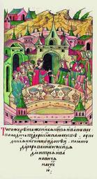 | Keywords: Facial Chronicle - b.11, p.359 - Wedding of Ivan Vsevolodovich and Anastasia of Moscow.gif В том же году женился князь Иван Всево- лодович Тве ской в оскве у великой княгини Евдокии взяв дочь великого князя Дмит ия Ивановича астасью http //www runivers ru/bookreader/book480116/ page/242/mode/1up century 16 anonymous PD-Old Files uploaded by Shakko from various sources Facial Chronicle v 7 - Ostermanovskiy 2-y tom 1378-1424 Weddings in medieval manuscripts Russia 1397 in Russia Princes of Tver Princesses of Moscow daughters Eudoxia of Moscow in miniature |