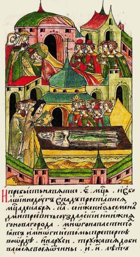 | Keywords: Facial Chronicle - b.11, p.528 - Semen Dmitrievich of Suzdal's death.gif И п обыл в Вят- ке 5 месяцев и еще больше азболевшись п еста- вился месяца декаб я в 21 день Этот князь Семен Дмит иевич Суздальский и ижне- го овго ода пе ежил много напастей и бед в О де и на Руси т удился ст емясь получить свою отчину и 8 лет http //www runivers ru/bookreader/book480116/ page/242/mode/1up century 16 anonymous PD-Old Files uploaded by Shakko from various sources Facial Chronicle v 7 - Ostermanovskiy 2-y tom 1378-1424 Death in medieval miniatures Russia Semen Dmitrievich of Suzdal |