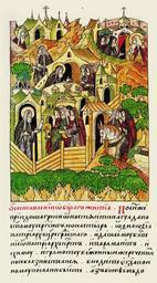 | Keywords: Facial Chronicle - b.11, p.063 - Sergius of Radonezh.gif О составлении обще- го жития Потом к святому Се гию в монасты ь п ишли из Константинопо- ля г еки посланные Филофеем пат иа хом Ца ег адским и пе е- дали ему благосло- вение от пат иа ха к ест и па аманд схиму и послание Блаженный же сказал им « е ошиблись ли вы ожет быть вы посланы к д угому едостоин я эти да ы получить от святейшего пат иа ха» Они же сп осили «Ты ли Се гий живущий в Радонеже » Он от- ветил «Я г ешный че нец Се гий» Они ответили «Тебя благо- словляет Филофей пат иа х Вселенский» Святой ничего не сказал После этого он оказал им большие почести и повелев им остаться в монасты е своем сам взял по- да ки и г амоту пат и- а ха и пешком пошел к блаженному мит о- политу Алексею в го од оскву Блаженный Се гий до поздней ста ости любивший т удиться никогда не ездил на коне но всег- да ходил пешком http //www runivers ru/bookreader/book480190/ page/7/mode/1up century 16 anonymous PD-Old Files uploaded by Shakko from various sources Facial Chronicle v 7 - Ostermanovskiy 2-y tom 1378-1424 Sergius of Radonezh in manuscripts |