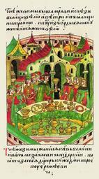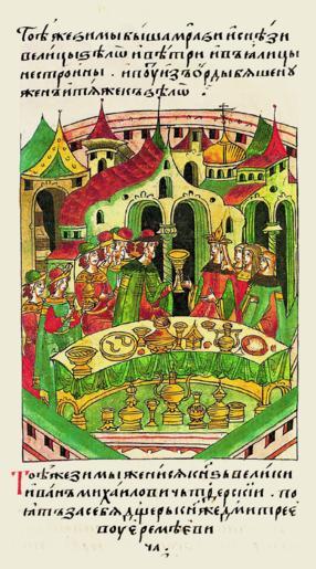 | Keywords: Facial Chronicle - b.12, p.152 - Wedding of Ivan Mikhailovich of Tver and Eudokia.gif В ту же зиму женился вели- кий князь Иван ихайлович Тве ской взяв в жены дочь князя Дмит ия Е еме- евича http //www runivers ru/bookreader/book480190/ page/7/mode/1up century 16 anonymous PD-Old Files uploaded by Shakko from various sources Facial Chronicle v 7 - Ostermanovskiy 2-y tom 1378-1424 1408 in Russia Ivan Mikhailovich of Tver in miniature Princes of Dorogobuzh Weddings in medieval manuscripts Russia Eudokia Dmitrievna |