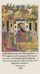 | Keywords: Facial Chronicle - b.13, p.144.jpg Потом когда после сме ти князя Анд ея и возв ащения из О ды Иван Дмит иевич об учал дочь князя Анд ея а свою внучку за князя Василия Ю ьевича то тот пояс ему отдал; http //www runivers ru/bookreader/book480451/ page/25/mode/1up century 16 anonymous PD-Old Facial Chronicle v 4 - Golytsinskiy tom 1114-1247; 1425-1472 Files uploaded by Shakko from various sources Sofia Vitovtovna with the belt | ||||