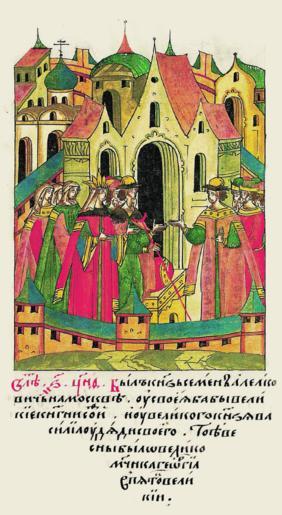 | Keywords: Facial Chronicle - b.14, p. 210 - Semen Olelkovich in Moscow.gif В 6959 году был князь Семен Олелькович на оскве у своей бабки великой княгини Софьи и у великого князя Василия у дяди своего Было это весной в день вели- комученика Гео гия в великую пятницу http //www runivers ru/bookreader/book480451/ page/25/mode/1up century 16 anonymous PD-Old Facial Chronicle v 4 - Golytsinskiy tom 1114-1247; 1425-1472 Files uploaded by Shakko from various sources Sofia Vitovtovna Vasily II of Moscow in miniature |