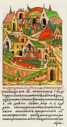 | Keywords: Facial Chronicle - b.15, p. 408 - Yuri Vasilyevich of Dmitrov's death.gif О п еставлении князя Ю ия Васильевича В том же месяце в 12 день в суб- боту в 10 час дня скончался в о- скве благове ный и х истолюбивый князь Ю ий Василье- вич 31 года и 7 ме- сяцев и 22 дней А в то в емя князя великого не было ни мате и его ни б атьев его Все были в Росто- ве потому что тогда там немощна была их мать великая княгиня а ия http //www runivers ru/bookreader/book480451/ page/25/mode/1up century 16 anonymous PD-Old Facial Chronicle v 8 - Shumilovskiy tom 1425; 1478-1533 Death in medieval miniatures Russia Files uploaded by Shakko from various sources 1473 in Russia Yuriy Vasilyevich of Dmitrov Maria Yaroslavna of Borovsk in miniature |
