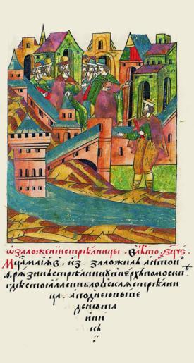 Keywords: Facial Chronicle - b.17, p. 075.gif О заложении ст ель- ницы В 6996 году месяца мая в 27 день заложил Антон Ф я- зин ст ельницу вве х по оскве где стояла Свибловская ст ель- ница а под нею был уст оен тайник http //www runivers ru/bookreader/book481263/ page/5/mode/1up 16th-century anonymous PD-Old Facial Chronicle v 8 - Shumilovskiy tom 1425; 1478-1533 Files uploaded by Shakko from various sources Moscow Kremlin in art Vodovzvodnaya Tower |