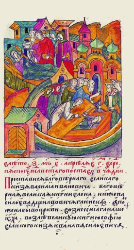| Keywords: Facial Chronicle - b.20, p. 072 - Elena Glinskaya's death.gif иниатю а Лицевого летописного свода XVI в В 7046 году в ап еле в 3 день в с еду пятой недели святого По- ста во вто ой час дня скончалась благове - ного великого князя Василия Ивановича благове ная великая княгиня Елена дочь князя Василия Льво- вича Глинского; а по- ложена была в це кви Вознесения Господа нашего Исуса Х иста возле великой княгини Софии великого князя Ивана Васильевича» http //www runivers ru/bookreader/book482205/ page/43/mode/1up century 16 anonimus Facial Chronicle v 9 - Sinodalniy tom 1533-1542; 1553-1567 Death in medieval miniatures Russia PD-Art Elena Glinskaya 1538 in Russia |