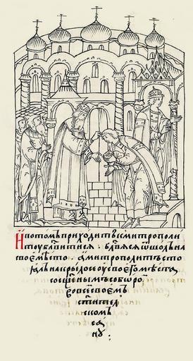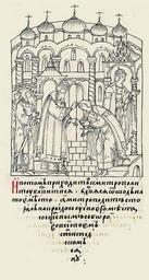 | Keywords: Facial Chronicle - b.20, p. 277 - Coronation Ivan IV.jpg ru Лицевой летописный свод И потом под- ходит к ми- т ополиту благословиться; и благословившись от- ходит на свое место а мит ополит стоял на кли осе у своего места со священным собо ом во всем своем святительском облачении century 16 http //www runivers ru/bookreader/book481478/ page/282/mode/1up RusPainter other versions PD-old-70-1923 Facial Chronicle v 10 - Tsarstvennaya kniga 1533-1553 Ivan IV's coronation Files uploaded by Shakko from various sources Uploaded with UploadWizard |