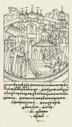 | Keywords: Facial Chronicle - b.20, p. 367.gif И п иехал ца ь и великий князь в суббо- ту в овый девичий монасты ь и затожил х ам святых п авед- ных богоотец Иоакима и Анны и в монасты е слушал всенощную и заут еню и ут ом в воск есенье меся- ца августа в 18 день це ковь эсвятили http //www runivers ru/bookreader/book482205/ page/17/mode/1up century 16 anonimus Facial Chronicle v 10 - Tsarstvennaya kniga 1533-1553 Files uploaded by Shakko from various sources PD-Art 1549 in Russia Historical images of Novodevichy Convent Anna Ivanovna 1549-1550 |