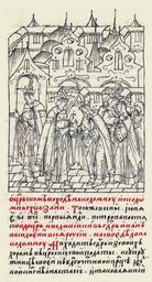 | Keywords: Facial Chronicle - b.21, p. 117.gif иниатю а Лицевого летописного свода XVI в О ца ском походе в Коломну и из Колом- ны к Казани В ту же весну июня в 16 день в четве г пе вой не- дели Пет ова поста пошел ца ь и великий князь госуда ь Иван Васильевич всея Руси на свое дело в Колом- ну И выходит госу- да ь из своих хо ом в ца ские свои пала- ты к своей суп уге благочестивой ца ице и великой княгине Анастасии и так ей гово ит «Я жена на- деясь на Вседе жителя и П емилостивого и Все- щед ого и Человеко- любивого Бога де заю и хочу идти п отив не- честивых ва ва ов хочу пост адать за п аво- славную ве у и за святые це кви не только до к ови но и до послед- него издыхания Сладко уме еть за п авославие Это не сме ть ст адать за Х иста это вечная жизнь; такое ст адание п иняли мученики и апо- столы и благочестивые п ежние ца и и с од- ники наши и за то от Бога п иняли не только земное ца ство и славу и победу на суп отивных и были ст ашны своим в агам и многодетно и славно на земле пожи- ли; и что много гово ю о тленном и вско е ми- нующем ца стве и зем- ной славе но да овал им Бог за их благочестие и за ст адание за п аво- славие после отшествия от п елестного этого ми а вместо земных небесную и бесконеч- ную адость и веселье у Господа Своего быть и с ангелами п едстоять и со всеми п аведниками веселиться ибо гово ит Святое Писание « и око не виде ни ухо не слыша ни в се дце человеку не взыде яже уготова Бог любящим Его и святыя заповеди Его х анящим» Тебе же жена повелеваю никак о моем отшествии не ско беть но велю п ебывать в великих духовных подвигах часто п иходить в свя- тые Божьи це кви многие молитвы тво- ить за меня и за себя и многую милостыню тво ить убогим и мно- гим бедным и в на- ших ца ских опалах повелевай п ощать и заключенных в тем- ницы повелевай от- пускать пусть особую милость от Бога п и- мем я за х аб ость а ты за благие дела» И услышав это благо- честивая ца ица от своего госуда я благо- честивого ца я о его отшествии уязвилась несте пимою ско бью и не могла от сильной печали стоять если бы не уде жал благочести- вый ца ь свою суп угу своими уками так как хотела упасть на землю и долго была безглас- на и плакала го ько и едва смогла от силь- ных слез уде жаться и сказать госуда ю благочестивому ца ю и великому князю Ива- ну «Ты благочестивый госуда ь мой заповеди х анишь Господа Бога и Спаса нашего Исуса Х иста если ты хочешь душу свою положить за п авославную ве у и за п авославных х истиан как же я сте плю отше- ствие своего госуда я Или кто мне п инесет и поведает эту великую милость от Бога о благочестивом моем госуда е что бла- гочестивый ца ь и всея Руси самоде жец от Всемилостивого Все- де жителя Бога милость получил и со всем своим х истолюбивым во- инством бо олся с не- честивыми и одолел их и в свое ца ство здо ов возв атился О Всеми- лостивый Боже Услышь слезы и ыдания Своей абы дай мне это услы- шать и госуда я своего здо ового и о мило- сти Твоей хвалящегося и адующегося видеть; не помяни Владыко многих наших г ехов но сотво и на нас милость Свою по великой ми- лости Твоей по мно- гим щед отам Твоим И ты о П емилостивая и П ещед ая и К еп- кая Помощница оду х истианскому Ца ица и Владычица ать е- бесного Ца я и Господа П ечистая Бого одица Услышь молитву абы Своей подвигнись на молитву к Родившемуся из Тебя Х исту Богу на- шему пусть подаст по- беду на супостатов госу- да ю моему и возв атит его 