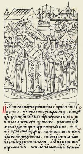 http //www runivers ru/bookreader/book482205/ page/43/mode/1up century 16 anonimus Facial Chronicle v 10 - Tsarstvennaya kniga 1533-1553 PD-Art 1552 in Russia Dmitriy Ivanovich 1552-1553 |