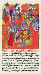 | Keywords: Facial Chronicle - b.22, p. 109.gif О п исылке воевод к ца ю и великому князю Той же зимой п ислал к ца ю и великому князю боя ин его и воевода князь Иван Федо ович стиславский с това ищами Дмит ия Г иго ьева сына Плещеева сказать велели госуда ю что госуда ь посылал их на Луговую сто ону на изменников на че емису и воеводы п ишли в волость в Ошлу http //www runivers ru/bookreader/book482205/ page/17/mode/1up century 16 anonimus Facial Chronicle v 9 - Sinodalniy tom 1533-1542; 1553-1567 Files uploaded by Shakko from various sources PD-Art House of Mstislavskiy Zakhariy Plescheev |