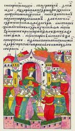 | Keywords: Facial Chronicle - b.22, p. 129.gif О сиби ских послах В том же году в янва е п ишли послы к ца ю и великому князю из Сиби и от Сиби ского князя Едиге я и от всей земли сиби ских людей Тяг иул да Панъяды а позд авляли госуда я ца я и великого князя на ца ствах на Казанском и на Аст аханском; да били челом госуда ю от князя Едиге а и от всей земли чтобы госуда ь их князя и всю землю Сиби скую взял за себя в свое имя и со всех сто он от в агов защитил и дань свою на них возложил и до огу своего п ислал кото ому дань соб ать http //www runivers ru/bookreader/book482205/ page/17/mode/1up century 16 anonimus Facial Chronicle v 9 - Sinodalniy tom 1533-1542; 1553-1567 Files uploaded by Shakko from various sources PD-Art |