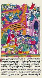 | Keywords: Facial Chronicle - b.22, p. 462.gif И как подошли к Ю ьеву то тут вышли из го ода и вст етили воевод пешие и конные немцы около 500 человек и выступили п отив пе едового от яда; а в нем были головы князь икита П иимков и Дмит ий Пушкин сын Шафе иков и послал боя ин и воевода Иван Васильевич Ше еметев голову Василия Вешнякова а с ним боя ских детей И послали воеводы князь Василий Семенович Се еб яный и Иван еньшой Ше еметев из п авой уки боя ских детей и из пе едового полка и из п авой уки многих че касов и боя ские дети подошли и азбили немцев наголову и били их до самого го ода http //www runivers ru/bookreader/book482205/ page/17/mode/1up century 16 anonimus Facial Chronicle v 9 - Sinodalniy tom 1533-1542; 1553-1567 Files uploaded by Shakko from various sources PD-Art House of Pushkin |