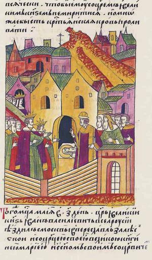 | Keywords: Facial Chronicle - b.23, p. 357.jpg Лицевой летописный свод В том же месяце мае в 7 день ца ь и великий князь всея Руси Иван Васильевич ездил из осквы в Пе е- славль Залесский с ца- ицей своей великой княгиней а ией и с сыном своим с ца евичем Иваном http //sterligoff ru/books/Rus_Kniga 2023 pdf century 16 anonimus Facial Chronicle v 9 - Sinodalniy tom 1533-1542; 1553-1567 Files uploaded by Shakko from various sources PD-Art Ivan Ivanovich Maria Temryukovna | ||||
