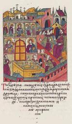 | Keywords: Facial Chronicle - b.23, p. 468.jpg Лицевой летописный свод В то же лето повелением госуда я ца я великого князя всея Руси Ивана Василье- вича самоде жца по- новлена была оспись це кви Благовещения П ечистой что на пе еходах; и иконы золотом и камнями повелел ук асить http //sterligoff ru/books/Rus_Kniga 2023 pdf century 16 anonimus Facial Chronicle v 9 - Sinodalniy tom 1533-1542; 1553-1567 Files uploaded by Shakko from various sources PD-Art Terem Churches | ||||