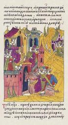 | Keywords: Facial Chronicle - b.23, p. 097.jpg В том же месяце п иехали из Че касс к ца ю и великому князю дети ста шего князя Тем юка из Каба ды Булге ук-му за и Салнук- му за бить челом чтобы госуда ь их пожаловал своих холопов и защитил их от Шевкалского госуда я; а с ними п иехал посланник госуда я служилый тата ин Байбе а http //www runivers ru/bookreader/book482205/ page/17/mode/1up century 16 anonimus Facial Chronicle v 9 - Sinodalniy tom 1533-1542; 1553-1567 Files uploaded by Shakko from various sources PD-Art House of Cherkasskiy 1558 in Russia |