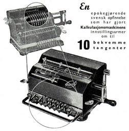 | Keywords: Facit keys 1935.jpg en Advertisement showing the revolutionary new Facit mechanical calculator with ten keys for entering digits Text in Norwegian sv Annonsbild som visar den revolutionerande nya Facit räknemaskinen mekanisk adderare med tio tangenter för att mata in siffror Text på norska Advertisement in http //runeberg org/merkbio/0228 html Merkantilt biografisk leksikon 1935 page 152 for A/S Dalton Machine Co Oslo Norwegian reseller of Facit calculators Author 1935 PD-old Facit Advertisements for mechanical calculators Location not applicable |