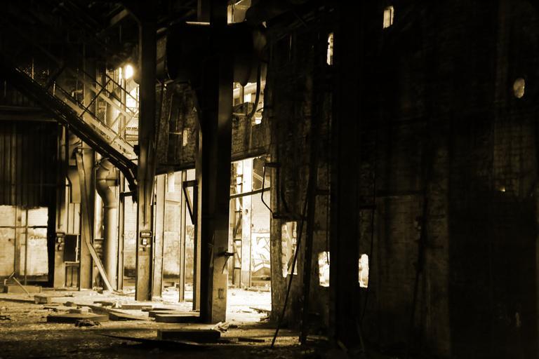Keywords: factory hall industry monochrome steel factory building ruin lapsed building industrial hall