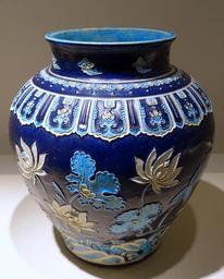| View Original: | Fahua jar with lotus pond and heron design, China, Jingdezhen kiln, Ming dynasty, 15th century AD, color glazes within borders - Matsuoka Museum of Art - Tokyo, Japan - DSC07278.JPG (-3601x4489) | |||