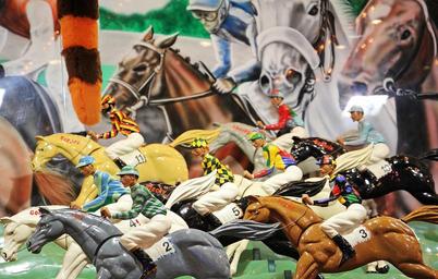 Keywords: fair hustle and bustle year market folk festival carnies fairground pleasure fun leisure horse racing racecourse ball track horses race evening entertainment abendstimmung