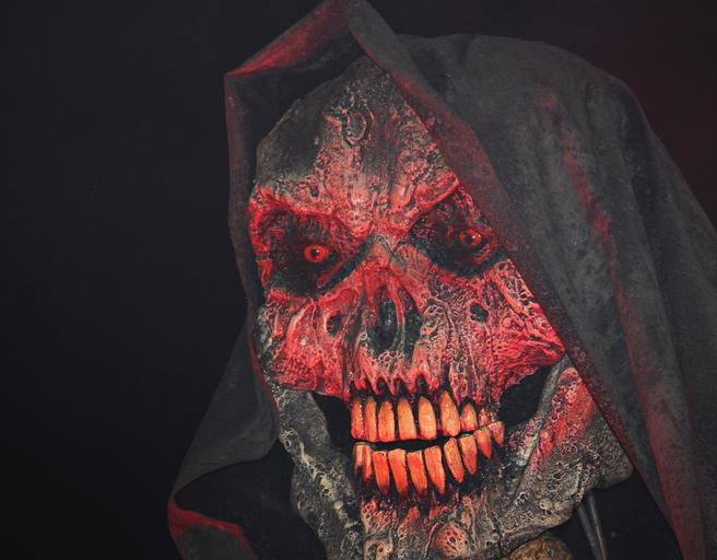 Keywords: fair hustle and bustle year market folk festival carnies fairground pleasure fun leisure ghost train horror train zombie web fig zombie track curve head skeleton skeleton head creepy shudder fog nebelmaschine lighting colorful lamps evening entertainment abendstimmung night caption mood contrast