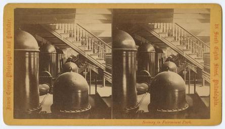 | Keywords: stereographs philadelphia fairmount water works fairmountwaterworks james cremer jamescremer machinery old mill house oldmillhouse public utilities publicutilities View of the interior of the Old Mill House at the Fairmount Water Works in Philadelphia, ca. 1870. Accession number: P.2011.47.1193 View of the interior of the Old Mill House at the Fairmount Water Works in Philadelphia, ca. 1870. Accession number: P.2011.47.1193 | ||||