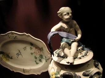 | Keywords: Fajance (Kastrupfabrikken).jpg Fajance i form af en potpourrivase og et fad med haveblomster fra Kastrupfabrikken på Amager omkring 1760 Nationalmuséet i København own 2012-12 Orf3us Kastrup Værk Porcelain of Denmark Antiquities in Nationalmuseet Copenhagen |