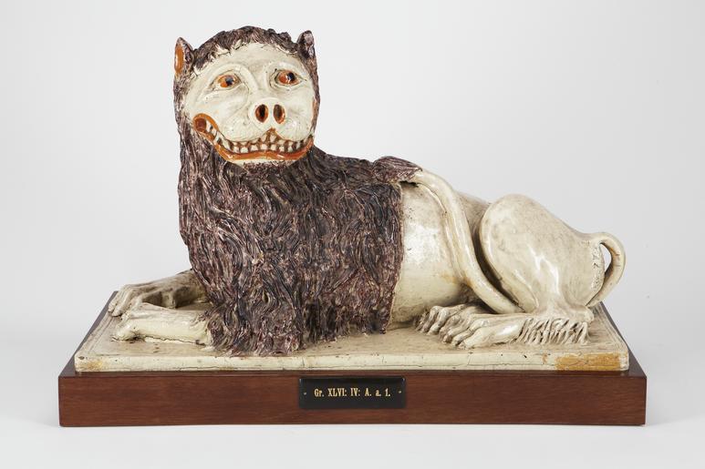 | Keywords: Fajans, lejon på sockel, 1700-tal - Hallwylska museet - 90482.tif LIGGANDE LEJON I antik stil; huvudet vridet åt vänstra sidan framtassarna lagda snett mot varandra baktassarna vid kroppens vänstra sida svansen nedböjd mellan bakbenen samt uppsvängd längs bukens vänstra sida med tofsen på ryggen; på rektangulär fotplatta Godset gulvitt täckt med blyglasyr Ögon med brungul iris och svart pupill gapet grinande med en tät tandrad synlig Manen i mangangredelint kroppen i övrigt liksom huvudet i blekt grågult Höjd 33 cm Fotplatta längd 53 8 cm bredd 26 cm original caption Fajans lejon på sockel 1700-tal <br/> Nyckelord Figur Prydnader Lejon Djur Fajans end other date century 18 size cm 26 fotplatta size cm 33 size cm 53 8 fotplatta HWY place of origin Lunéville FR original filename hm_dig7224 11697 inventory number HWY XLVI IV A a 01 90482 CC-BY-SA Erik Lernestål Erik Lernestål Statues of lions Faience Faience in the Hallwyl museum Media contributed by LSH dim-with multiple size templates Media contributed by LSH unmatched keyword Media contributed by LSH 2013-10 |