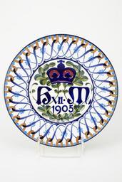 | Keywords: Fajans, tallrik, baksida, 1905-1906 - Hallwylska museet - 90472.tif TALLRIK Rund med kälformig kep och snett utstående brett brätte samt på fotkant Dekor I färger under blyglasyr denna finsprucken Godset vitt På bottnens insida konung Haakon VII s och drottning Mauds av Norge krönta initialer i mörkblått kronans foder i mörkrött nedtill årtalet i samma färg som initialerna; nedanför årtalet samt kring initialerna rankor i mörkare och ljusare grönt med blad liknande lingonrisets nerverna röda; runt bottenkanten en mörkblå rand På brättet dekor av tre löst tvinnade band i mörkblått upphängda vid ytterkanten i bruna öglor på varannan av bandet vindlingar två par bladliknande ornament i ljusblått Runt ytterkanten en rand i mörkblått därinnanför en något bredare dylik i ljusblått avbruten av nyssnämnda öglor På bottnens utsida en påklistrad lapp i grönt med upphöjt guldtryck med texten KRISTIANIA KUNSTHANDEL H 3 3 cm; D 24 8 cm Köbenhavns fajancefabrik f d Aluminia Från slutet av 1905 eller från 1906 Gåva till Wilhelmina von Hallwyl från hennes dotterson Rolf de Maré julaftonen 1914 Inköpt av honom hos konsthandlaren Ludv F Olsen Co Kristiania original caption Fajans tallrik baksida 1905-1906<br/> Nyckelord Fat Tallrik Signatur Fajans Föremålsbild - 1905 1906 size cm 3 3 24 8 HWY place of origin Köpenhamn DK original filename hm_dig7214 13462 inventory number HWY XLVI I A b 01 90472 CC-BY-SA Erik Lernestål <gallery caption Different images of same object > File Fajans tallrik baksida 1905-1906 - Hallwylska museet - 90471 tif </gallery> Erik Lernestål Plates Plates Signatures Faience Faience in the Hallwyl museum Media contributed by LSH 2013-10 |