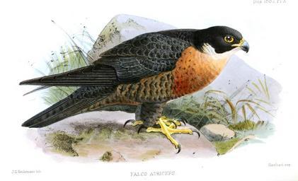 | Keywords: FalcoAtricepsKeulemans.jpg « Falco atriceps » Falco peregrinus peregrinator Subspecies of Peregrine falcon - « Falco atriceps » Falco peregrinus peregrinator Sous-espèce de Faucon pèlerin - this ssp is called Shaheen falcon http //archive org/stream/ibis36brit page/n341/mode/2up The Ibis ser 4 vol 6 creator John Gerrard Keulemans 1882 PD-old-100 Peregrine Falcons in art Ibis 1882 | ||||
