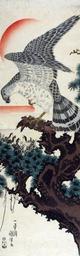 | Keywords: Falcon with nestlings in pine tree at sunrise (5758875193).jpg en <b>Accession Number </b> 1985 23 <b>Display Artist </b> Utagawa Kuniyoshi <b>Display Title </b> Falcon with nestlings in pine tree at sunrise <b>Creation Date </b> 1830-1842 <b>Medium </b> Woodblock <b>Height </b> 29 in <b>Width </b> 9 11/16 in <b>Display Dimensions </b> 29 in x 9 11/16 in 73 66 cm x 24 61 cm <b>Publisher </b> Maruya Seibei <b>Credit Line </b> Gift of Mr Clinton G Abbott <b>Label Copy </b> This extremely rare print by Kuniyoshi shows a falcon that just landed on her nest in a pine tree to feed her four nestlings In the background above the rather majestic bird with outstretched wings is the rising sun Vertical prints of this size were meant to be mounted as hanging scrolls kakemono and are thus called hanging-scroll prints kakemono-e While they were very popular painted hanging scrolls were costly and buyers eagerly embraced the development of printed substitutes for these paintings <b>Label Copy Spanish </b> Esta impresin sumamente rara por Kuniyoshi muestra a un halcn que acaba de aterrizar en su nido en un pino para darle de comer a sus cuatro polluelos En el fondo sobre el ave majestuosa de alas extendidas est el sol naciente Las impresiones verticales de este tamao deban montarse como rollos colgantes kakemono y por lo tanto se llaman impresiones de rollo colgante kakemono-e Aunque eran muy populares los rollos colgantes pintados eran muy costosos y los compradores felizmente adoptaron el desarrollo de los sustitutos impresos de estas pinturas <b>Collection </b> <a href http //www sdmart org/art/our-collection/asian-art rel nofollow >The San Diego Museum of Art</a> 2007-05-09 15 31 21 https //www flickr com/photos/thesandiegomuseumofartcollection/5758875193/ Flickr en thesandiegomuseumofartcollection PD-old-100 Files from the San Diego Museum of Art to be checked |