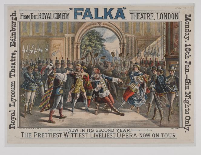 | Keywords: Falka - Weir Collection.jpg  Monday 16th Jan - six nights only 'Falka' From the Royal Comedy Theatre London Now in its second year The prettiest wittiest liveliest opera now on tour Printed by David Allen Sons Belfast Size cm 37 50 exhibition history Institution National Library of Scotland Poster object history object type PD-old-70-1923 place of creation London; Edinburgh Weir 1 3 74601946 Falka - Weir Collection Uploaded with GWToolset Falka - Weir Collection http //deriv nls uk/56YK98Q/7442/74426329 2 jpg Images uploaded as part of NLS-WMUK collaboration Weir Collection |