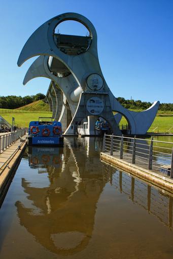 Keywords: falkirk wheel scotland uk engineering lift canal scottish tourism transport water steel turn attraction enormous grand heavy majestic rotate transportation rotating union boatlift