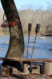 Keywords: fall autumn river nature trail gate wood outdoor serene tranquil farm peaceful lifestyle relaxation vacation camping