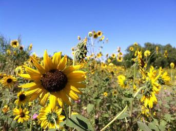 Keywords: fall autumn sunflower blue sky field kansas yellow
