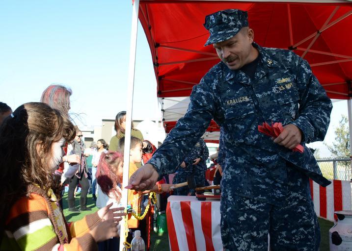 Keywords: Fall festival at Vista Del Mar Elementary School 131030-N-BB534-708.jpg en Chief Warrant Officer 4 Gary Kralicek hands a ticket to a child after she knocks down the milk jugs during the fall festival Vista Del Mar Elementary School Sailors assigned to amphibious transport dock ship USS Green Bay LPD 20 volunteered to run the games at the school's fall festival Green Bay is conducting a regularly scheduled dry dock period at General Dynamics National Steel and Shipbuilding Company NASSCO U S Navy photo by Mass Communication Specialist 1st Class Elizabeth Merriam/Released 2013-10-30 Petty Officer 2nd Class Elizabeth Merriam https //www dvidshub net/image/1046589 131030-N-BB534-708 2013-11-04 18 14 SAN DIEGO CA US PD-USGov-Military-Navy USS Green Bay LPD-20 Images from DoD uploaded by Fæ |
