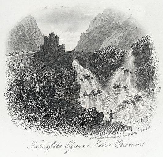 | Keywords: Fall of the Ogwen, Nant Francon.jpeg Abstract A view showing the waterfall under the bridge at Nant Ffrancon Size mm 175 88 exhibition history Institution National Library of Wales Technique print engraving bw object history object type PD-old-70-1923 place of creation place of discovery 1132294 Fall of the Ogwen Nant Francon Uploaded with GWToolset Fall of the Ogwen Nant Francon http //dams llgc org uk/behaviour/llgc-id 1132294/fedora-bdef image/reference Images uploaded as part of NLW - WMUK collaboration Welsh Landscape Collection Nant Ffrancon Afon Ogwen 1850s Waterfalls in Wales in art Mountains of Wales Mountain roads Bridges in art Bridges in Wales |